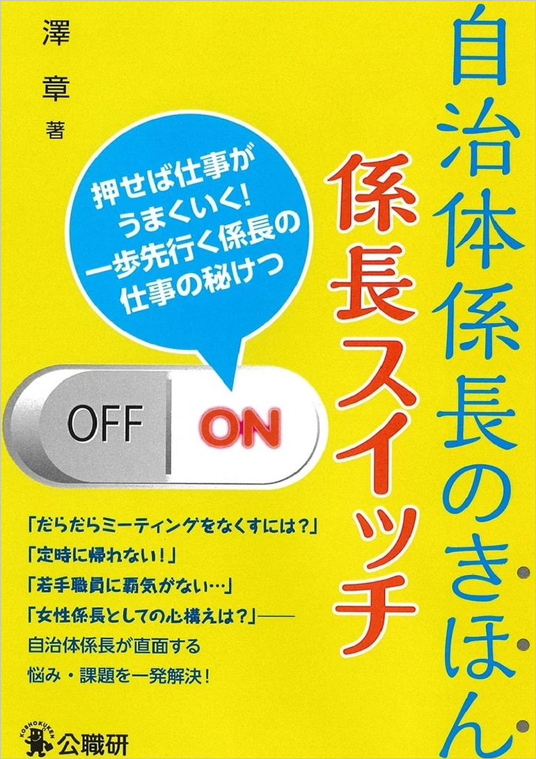 係長になりたての自治体職員、あるいは、これから係長を目指す人たちに向け、係長が直面する様々な課題や悩みを取り上げ、それを乗り越えるためのコツを伝授。ここを押せば係長が前へ進むスイッチ=「係長スイッチ」をオンにして、課題の山々を乗り越えよう!