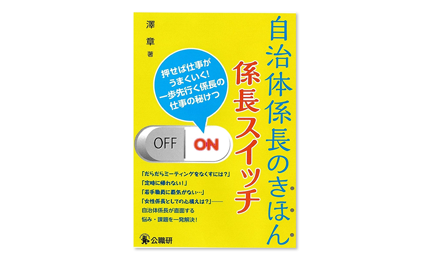 係長になりたての自治体職員、あるいは、これから係長を目指す人たちに向け、係長が直面する様々な課題や悩みを取り上げ、それを乗り越えるためのコツを伝授。ここを押せば係長が前へ進むスイッチ=「係長スイッチ」をオンにして、課題の山々を乗り越えよう!