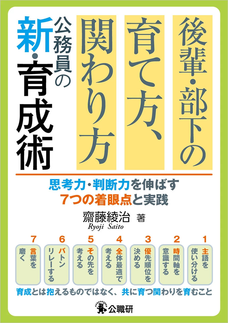 【書名】後輩・部下の育て方、関わり方 公務員の新・育成術 思考力・判断力を伸ばす7つの着眼点と実践