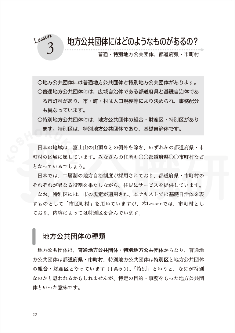 Lesson3 地方公共団体にはどのようなものがあるの?(普通・特別地方公共団体、都道府県・市町村)