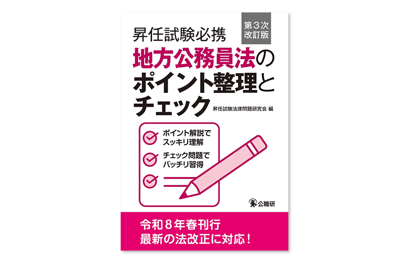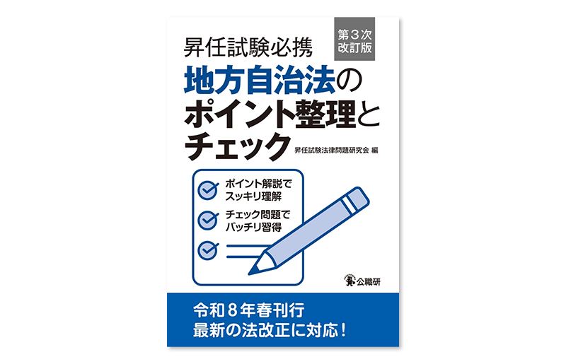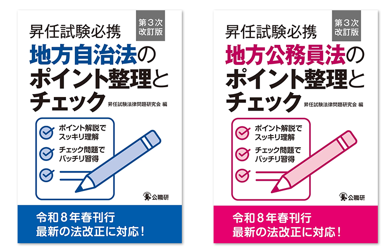 『昇任試験必携地方自治法のポイント整理とチェック 第3次改訂版』『昇任試験必携地方公務員法のポイント整理とチェック 第3次改訂版』を刊行予定です。