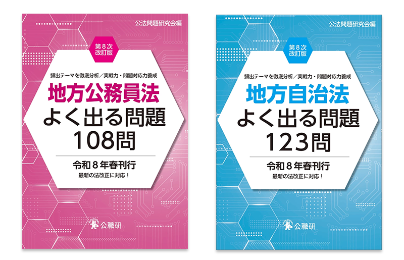 『地方自治法よく出る問題123問 第8次改訂版』『地方公務員法よく出る問題108問 第8次改訂版』を刊行予定です。